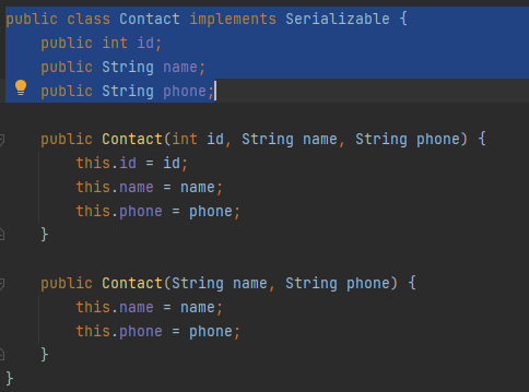 1. 우선 클래스의 객체를 별도로 정의해둔 파일에서 implements Serializable 을 작성해준다.