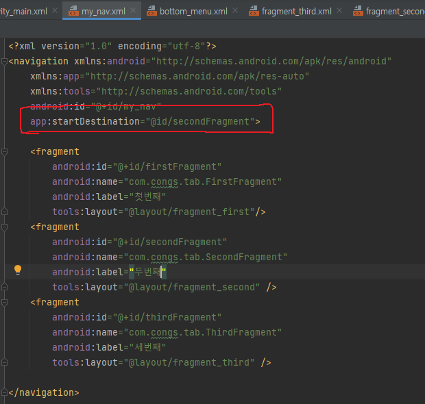 fragmentContainerView를 BottomNavigationView 와 동급으로 맞추고