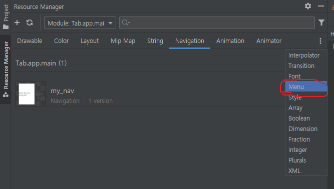 BottomNavigationView에 menu 연결.