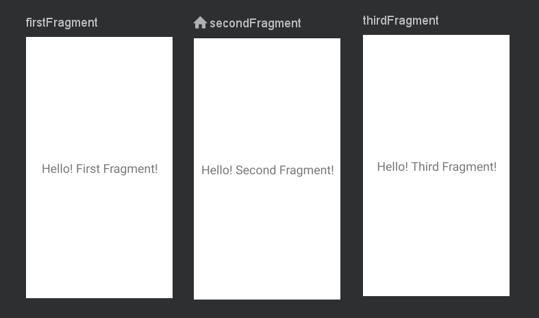 각 Fragment 화면을 구성. 액티비티와 연결된 레이아웃 화면과 똑같이 편집하면 된다. (같은 xml 파일)