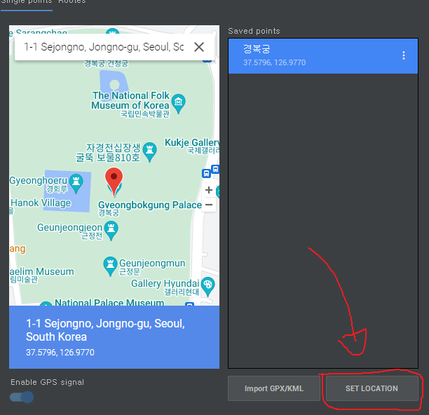 2. 지도에서 위치 찾아서 SAVE POINT하기.